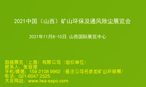 我們特于2021年11月8-10日在中國(guó)(太原)煤炭交易中心-山西國(guó)際會(huì)展中心舉辦“2021中國(guó)(山西)礦山環(huán)保及通風(fēng)除塵展覽會(huì)”,本展屬同期綠色礦山展子展,由勵(lì)威展覽(上海)有限公司組織。