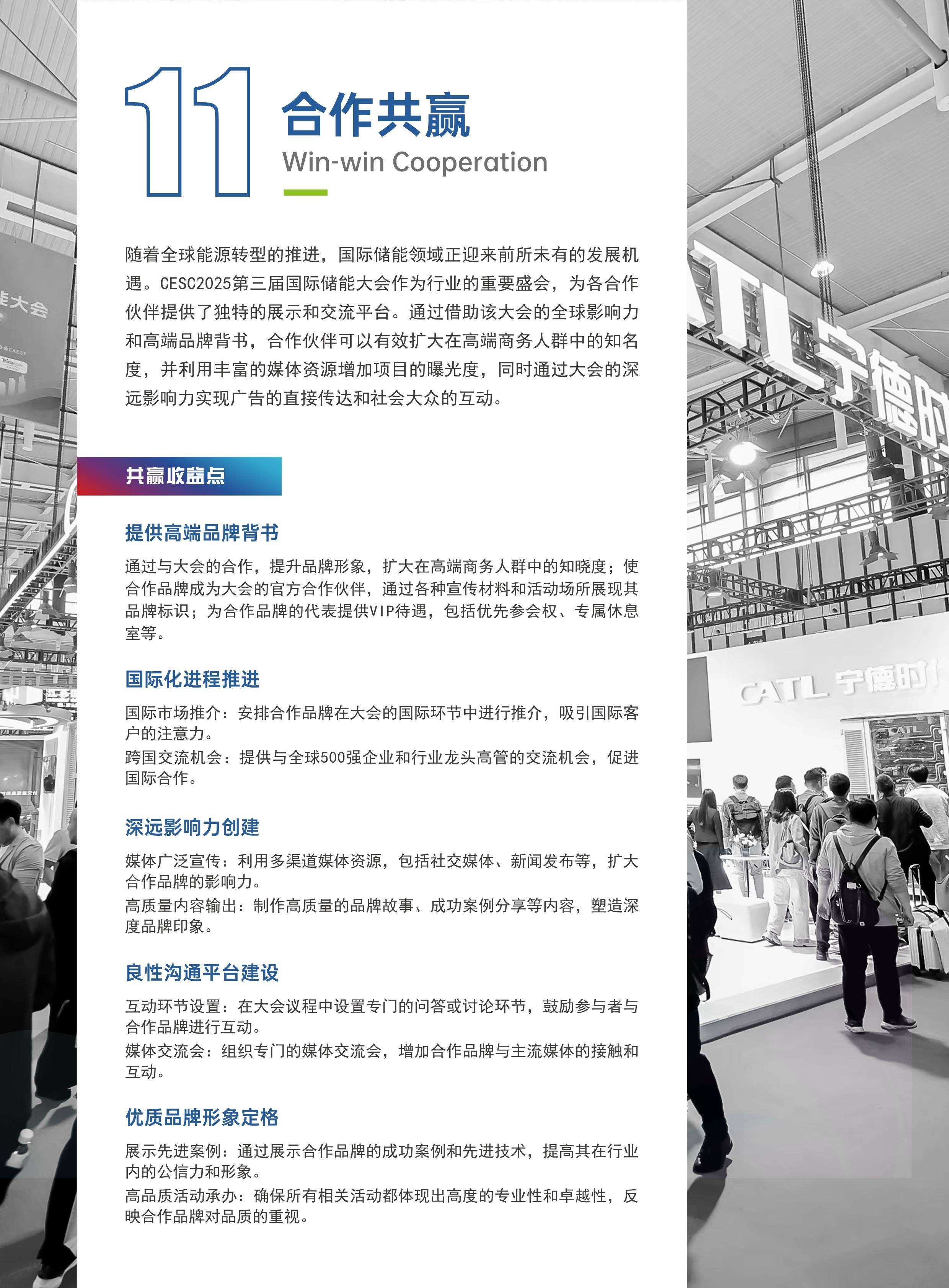隨著全球能源轉(zhuǎn)型的推進(jìn),國際儲(chǔ)能領(lǐng)域正迎來前所未有的發(fā)展機(jī)遇。CESC2025第三屆國際儲(chǔ)能大會(huì)作為行業(yè)的重要盛會(huì),為各合作伙伴提供了獨(dú)特的展示和交流平臺(tái)。通過借助該大會(huì)的全球影響力和高端品牌背書,合作伙伴可以有效擴(kuò)大在高端商務(wù)人群中的知名度,并利用豐富的媒體資源增加項(xiàng)目的曝光度,同時(shí)通過大會(huì)的深遠(yuǎn)影響力實(shí)現(xiàn)廣告的直接傳達(dá)和社會(huì)大眾的互動(dòng)。