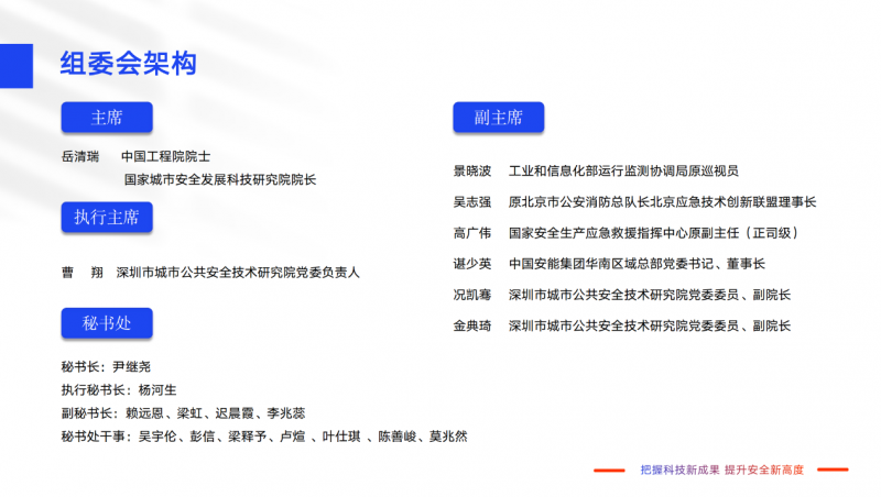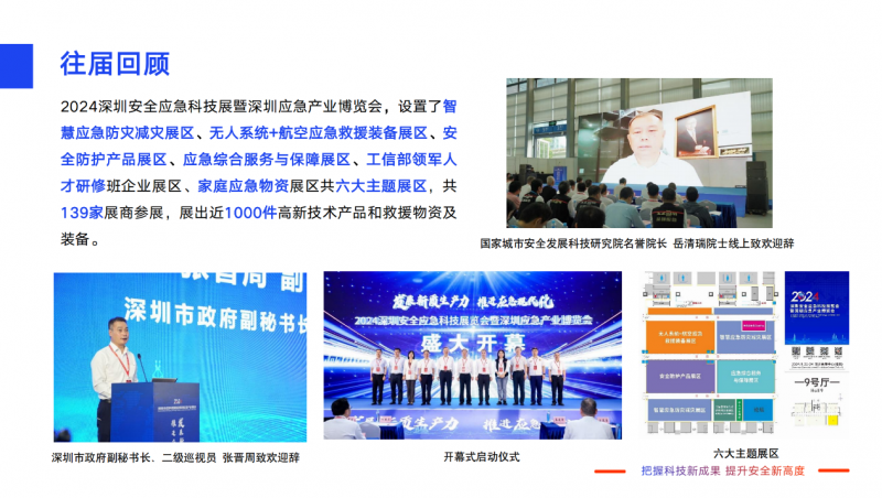 指導單位:廣東省應急管理廳、深圳市突發(fā)事件應急委員會辦公室、深圳市發(fā)展和改革委員會、深圳市工業(yè)和信息化局、深圳市科技創(chuàng)新局、深圳市應急管理局、深圳市商務局(深圳市保稅區(qū)管理委員會)、深圳市投資促進局、深圳市消防救援支隊