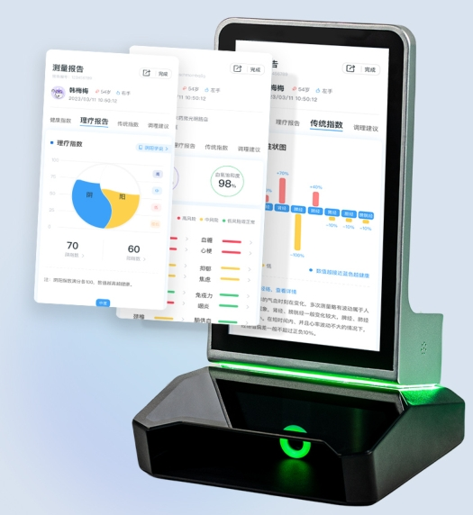 可提供經(jīng)絡(luò)健康狀況、16種疾病風(fēng)險評估、心率血氧、理療指數(shù)、濕氣血瘀、體質(zhì)臟腑辨證、循環(huán)系統(tǒng)穩(wěn)定度檢測.…