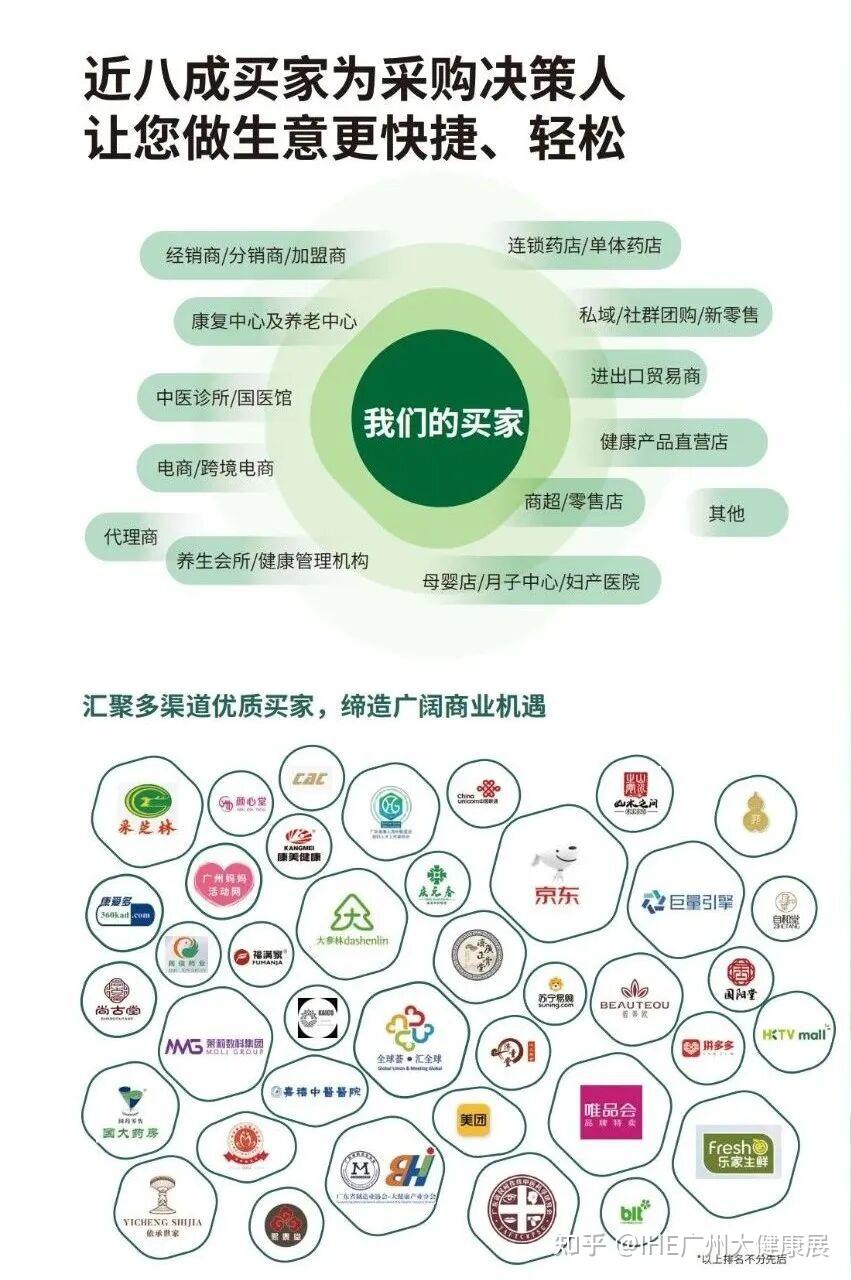 康悅博健、青晨藥業(yè)、海氏海諾、科倫集團、片仔癀、蛋小白、乳高貝樂、刺力王、大別山霍斛、包頭東寶、GLOBAL FM Corp.、BLI (THAILAND) CO.,LTD.、氧氣能量、艾貝健、婆羅洲天然燕窩、美國愛司盟、哈工天愈、東風靈、李時珍、艾尋、品鑒食品、大眾健康、九芝堂、燕德居、葛蘭瑞克、肽都生物、一然生物、美國陽光營養(yǎng)、加拿大北極一號、加拿大安大略省西洋參、阿莫菲克、綠麒麟、裕世康國際、佳福瑞、江蘇康能、益生谷、廣東逢春、阿卡姆、新寶堂、普澤生物、科然生物、粵微、普惠天成、歐飛基因、廣州澤力、康能生物、九楚大健康、西沙諾麗、佛慈、衍生、秋田虹、君倍臣、華大農(nóng)業(yè)、金弘藥業(yè)、芝人堂、科拓生物、以嶺健康、長白山人參、九生堂、凈合、天津艾可、中駝、絲路駝寶、湖南萬象、仁和康健、廣東木林森、總裁一號、安嘉仁、聯(lián)馨藥業(yè)、泰升藥業(yè)、麥考林、潤盈、品斛堂、酵博士、福建圣耳、瀟湘天然水、今旭面業(yè)、燕之初、習寶、深圳天勤、萬壽康、疆農(nóng)源、優(yōu)唐健康、先康達、艾貝健、綠來康、金姆健康、天禽醫(yī)療、大經(jīng)中醫(yī)、階梯健康、益脈通、美哈醫(yī)藥、南芯醫(yī)療、僑鑫醫(yī)療、瑞爾康醫(yī)療、微策生物、鴻卓醫(yī)療、衛(wèi)家健康、玉玄宮、坤易綠能、多對多、北京安口、北京金華漢、大有健康、天倫萬達、美納防偽、艾斯蕓、有贊、知乎等大健康品牌。
