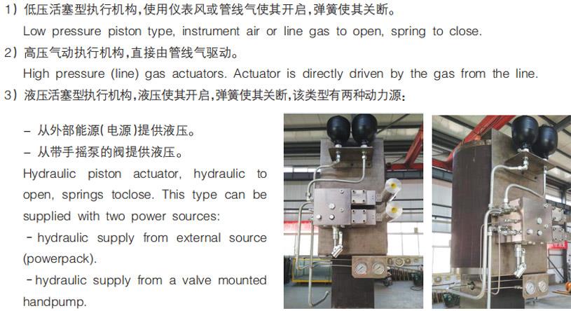 4、執(zhí)行機(jī)構(gòu)是壓力傳感元件和過壓控制閥之間重要的元件。 它的優(yōu)良設(shè)計(jì)使在延長(zhǎng)使用期后仍保持快速可靠。 在過壓保護(hù)系統(tǒng)(HIPPS)中可使用三種類型執(zhí)行機(jī)構(gòu):